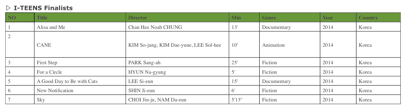 Meanwhile the I-TEENS category, now in its second year, will screen seven films produced by Korean teenage females.