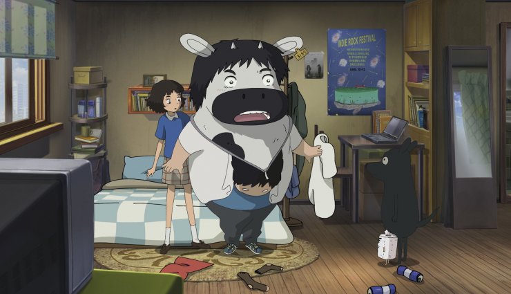 Yet while the animation is fluid and the characters charming, The Satellite Girl and Milk Cow comes undone due to the haphazard narrative. The screenplay really requires several more rewrites as the film is mostly comprised of a series of sketches rather than an overarching story, and while such vignettes are enjoyable there really isn’t a sense of a greater story being told. As Kyeong-cheon attempts to continue his life as a milk cow and Il-ho seeks to understand her purpose of existence, a variety of tangents enter the fray that stop both of them from exploring such desires, serving as fun yet distracting moments from the greater quests at hand. Such events rarely contribute to the story and often create a greater number of sub-stories that never achieve fruition.