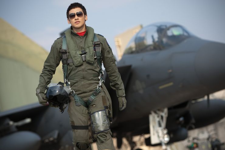 However for the vast majority of its running time R2B: Return to Base plays out akin to a low-grade TV drama. All the stereotypes are present with frustrating clarity. The hero Tae-hoon has obviously been modeled on Tom Cruise’s Maverick, yet Rain/Jung Ji-hoon doesn’t have the same charisma to make the protagonist likable. Maverick’s arrogance and swagger fits perfectly with American cultural values; Tae-hoon is generally an insolent, selfish fool that defies orders for the sake of it. His love interest, in the form of Se-yeong, fares worse as she is reduced to yet another beautiful-yet-damaged female role, a woman in need of rescuing from herself despite her talents. Outside of the main two protagonists are an array of supporting cast members, so much so that precious little time is given to establish them as worthy of inclusion. Cheol-hee arguably receives the most screen-time as the rival, although his character development is stunted which dilutes the antagonism with Tae-hoon. Novice Seok-hyeon is present mainly for comedy value as he screams and faints during flights, providing entertainment. Comedy is also present in the form of two workmen fulfilling military service, but after featuring in a handful of quips they unceremoniously disappear altogether. Other co-pilots feature in the film such as Oh Yoo-jin (Lee Ha-na (이하나) and partner Jo Tae-bong (Jeong Kyung-ho (정경호), but again their inclusion is a limited attempt to add melodrama to the proceedings. All the of the characters are involved in stock narrative events that help to establish relationships but do little to propel the plot, which is conveyed as an afterthought.