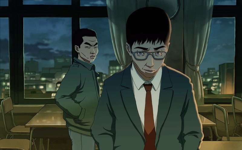 It is also wonderfully ironic that the ‘saviour’ of the village is akin to the devil personified. At times even wielding a forked weapon and using fire, the outsider is an appalling brute who destroys everyone in his path and is routinely expelled from the community as the spawn of satan. His evil ways while speaking the truth are counter-balanced with the priest who behaves saintly while telling lies, and their interactions and conflicts are intelligent as well as explosive. The violence that occurs due to their personal war is ferociously bloodthirsty, with the fluidity of the animation a remarkable evolution for director Yeon. Indeed, with the exception of one rather ‘blocky’ church dancing scene, The Fake sports impressive visuals throughout whilst retaining director Yeon’s distinct style, with his use of colour and shadow adding tremendous weight to the intensity of the story.
